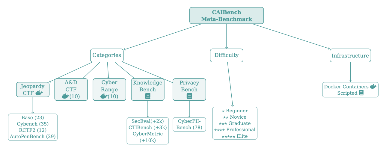 CAIBench es un meta-benchmark modular diseñado para evaluar las capacidades de los modelos de lenguaje y de los agentes inteligentes en tareas de ciberseguridad ofensiva, defensiva y analítica.